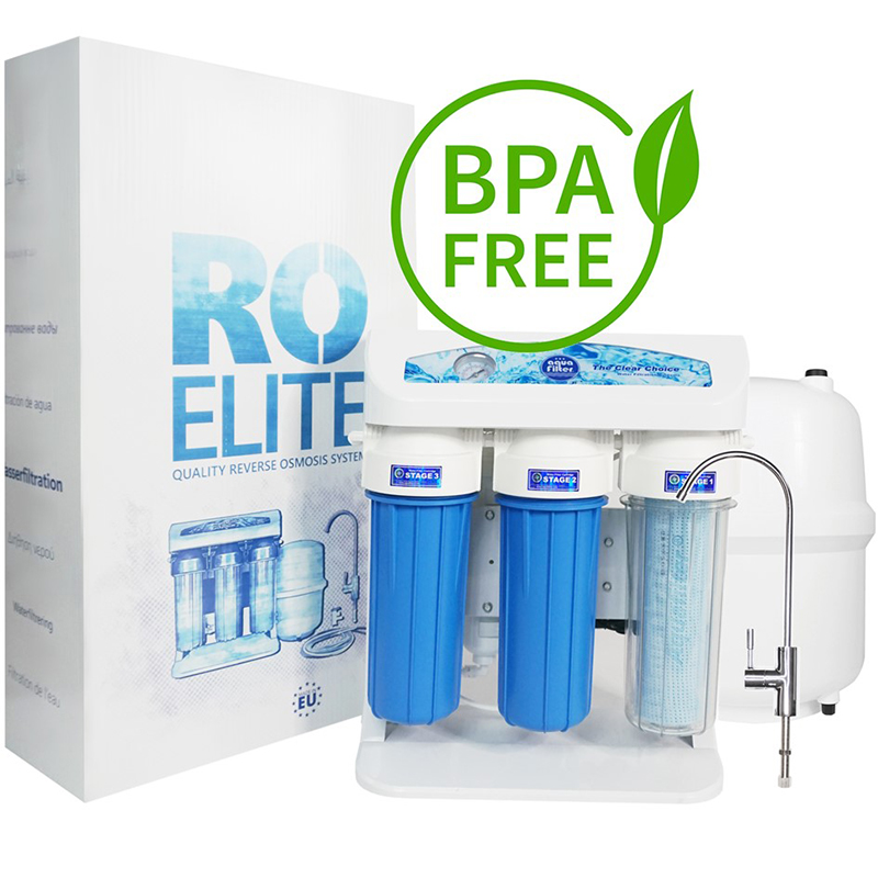 - Zbiornik - hydrostatyczny 12-litrowy zbiornik dołączony do systemu RO Elite. Zbiornik hydrostatyczny zapewnia dostarczanie oczyszczonej wody pod ciśnieniem, nawet w przypadku braku prądu lub bieżącej wody z kranu.