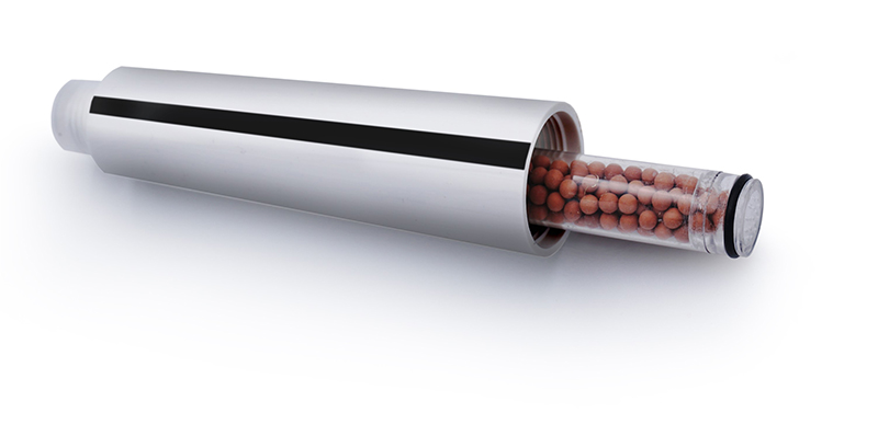 Nowoczesny filtr prysznicowy Aquafilter z wkładem który redukuje ilość szkodliwego chloru, przekształcając go na nieszkodliwe chlorki
