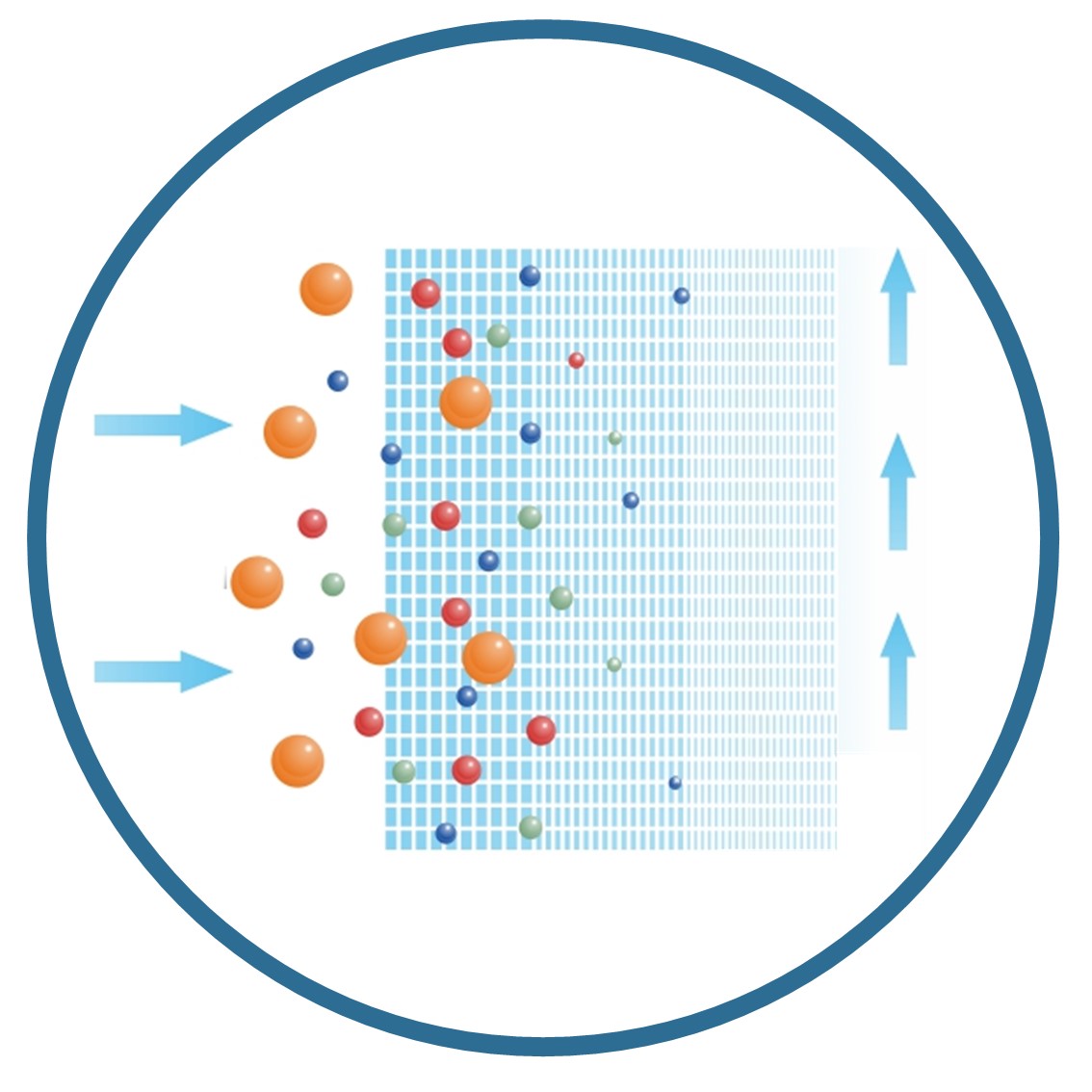 Zanieczyszczona woda przepływa przez wkład w kierunku jego rdzenia. Osady w niej zawarte zatrzymywane są przez mikropory, których średnica maleje w kierunku wnętrza. Duże cząsteczki wychwytywane są przy powierzchni, natomiast małe w głębiej położonych warstwach.