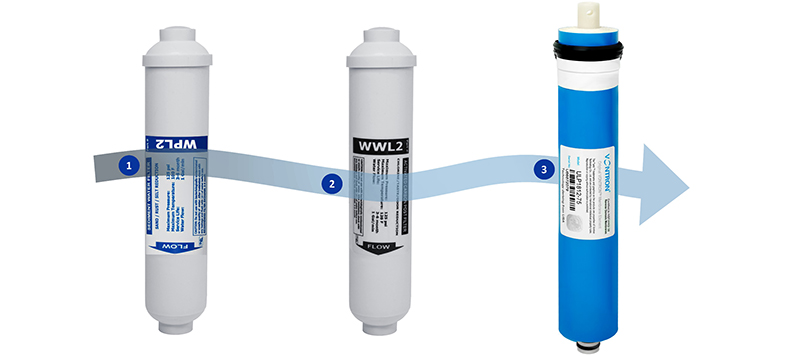 3-stopniowy system odwróconej osmozy z membraną VONTRON 75GPD.